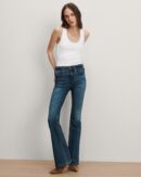 In a classic blue wash, the Beverly jean features a high-rise waist that is fitted through the hips and thighs with a subtly flared leg. High quality stretch denim offers a flattering look with a flexible fit. Tuck in any of our tops and add sky-high heels for an elongating silhouette.